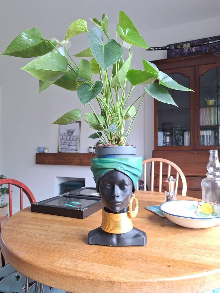 The African Woman Head Planter | Unique Face Planter Pot is a handmade planter, made from hand-cast stone. Handmade in Cumbria, UK by Ripleys Nest.