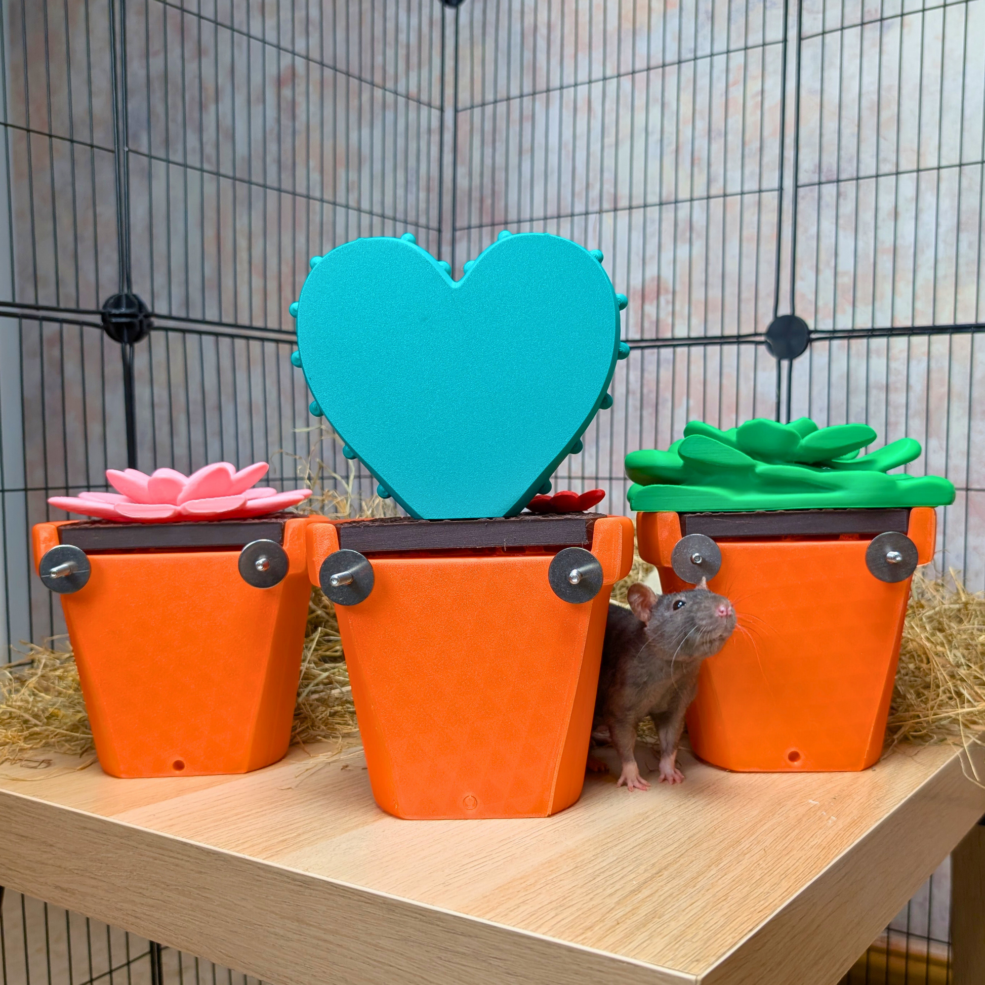 Is your pet's home ready for a splash of charm? This Cactus Pot rat hide is the perfect little sanctuary, designed to transform their cage into a whimsical desert escape. More than just a simple hideout, it’s a piece of art that provides a secure and cozy nook for your rat, hamster, or other small friend to nap and dream. The unique heart-shaped cactus design brings a touch of handcrafted character to their habitat, making it feel less like a cage and more like a curated home.