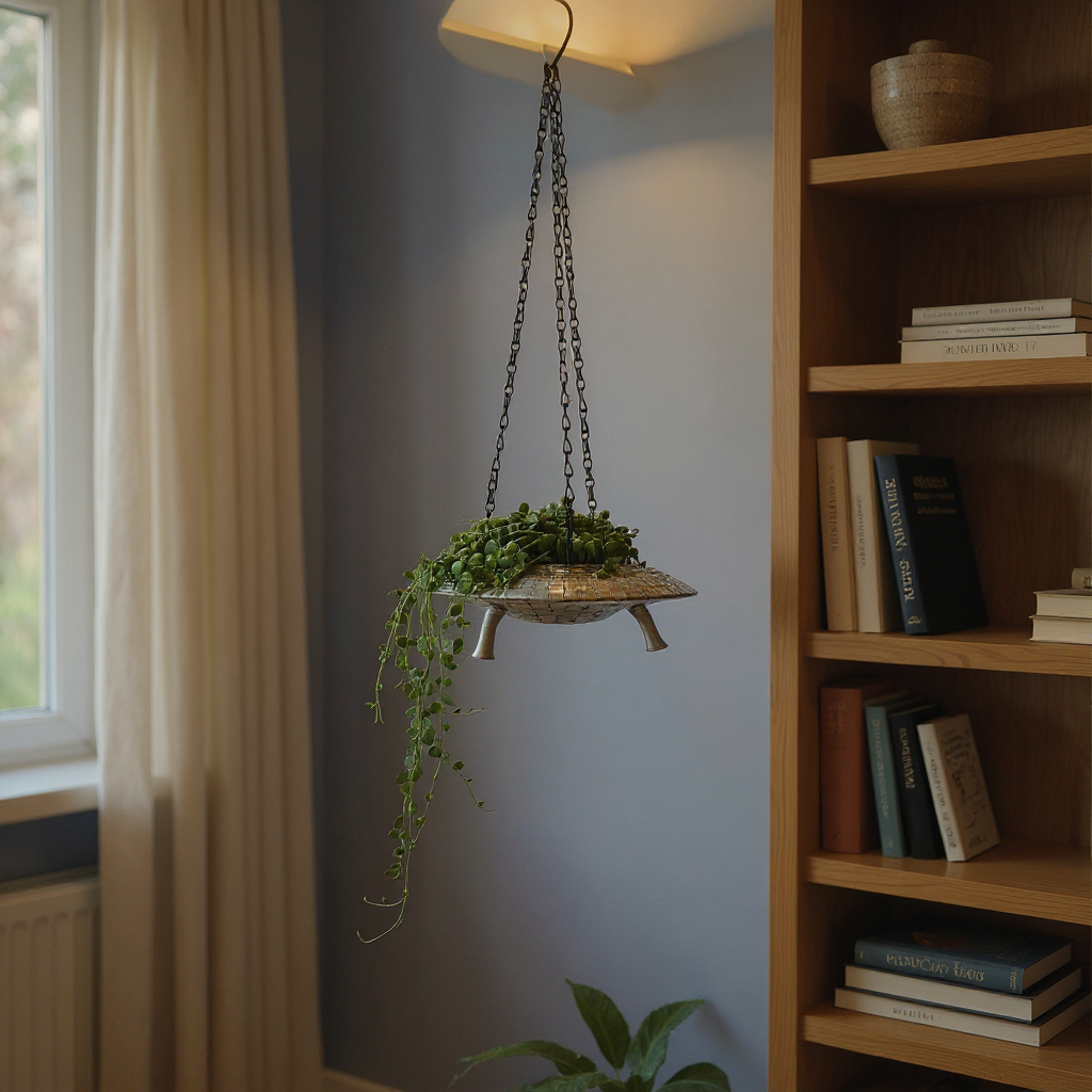 Transform your space with our mesmerizing UFO-shaped planter featuring real glass mirrors that catch and reflect light beautifully.