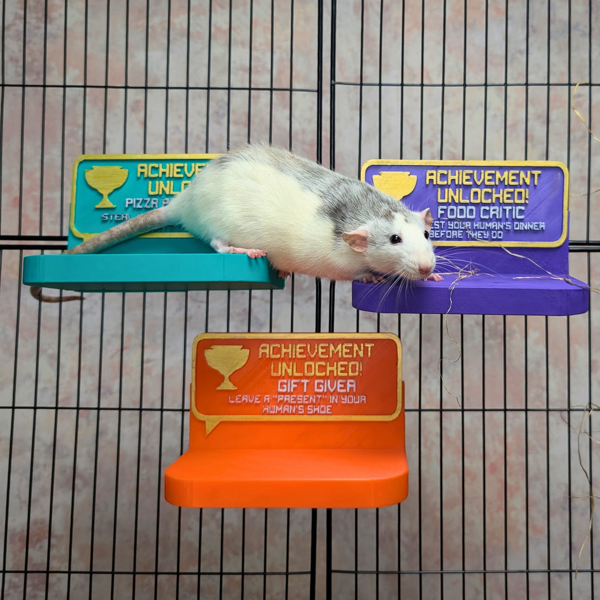 Transform your pet's home with this charming and endlessly fun cute rat toy shelf. More than just a simple platform, this personalized rat cage accessory is an artistic statement piece designed for enrichment. It serves as a sturdy ledge, a fun climbing challenge, and a cozy alternative to a standard rat bed or hammock. Each piece of cage decor is handcrafted in our UK workshop to provide a durable hideaway and a splash of playful character. Choose from our quirky achievements or create your own custom text for a truly unique gift for the small animal lover in your life.
