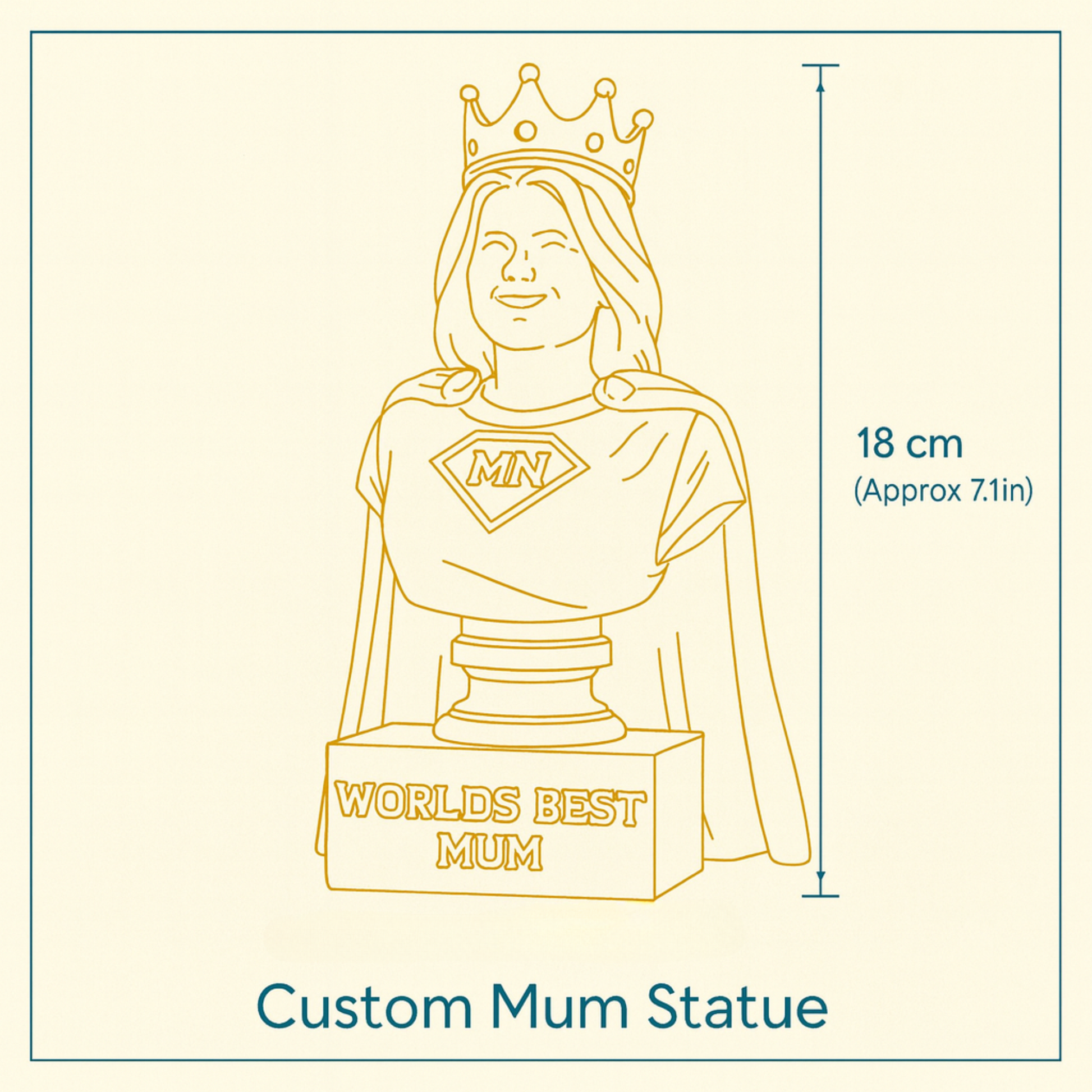 Celebrate her with a custom mum statue made from your photo. Gold crown, custom initials, and an engraved base turn it into a true keepsake for mum.