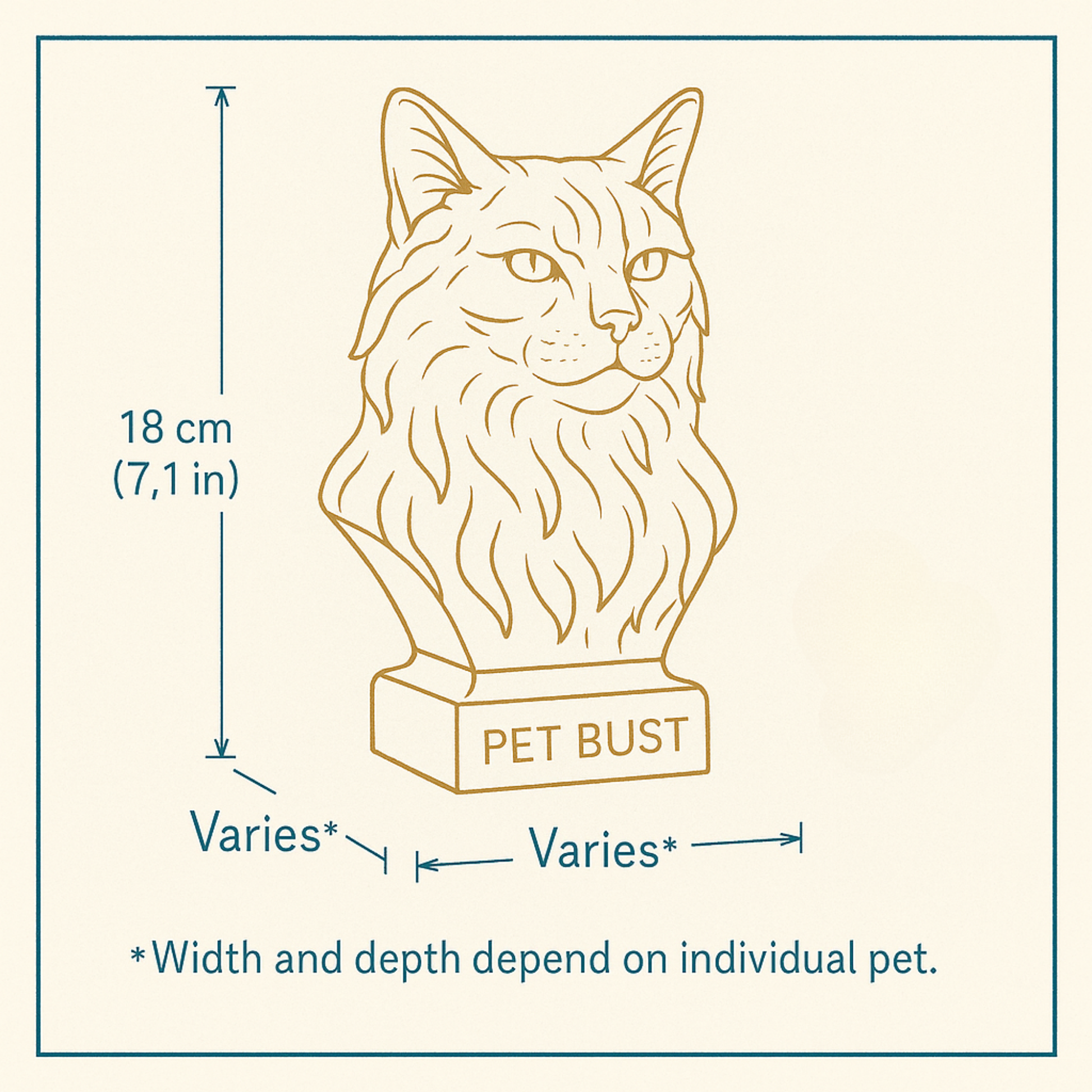 Size: Every bust stands at a proud 18 cm (7.1 in) tall. The width and depth will vary to perfectly match your pet's unique shape.
