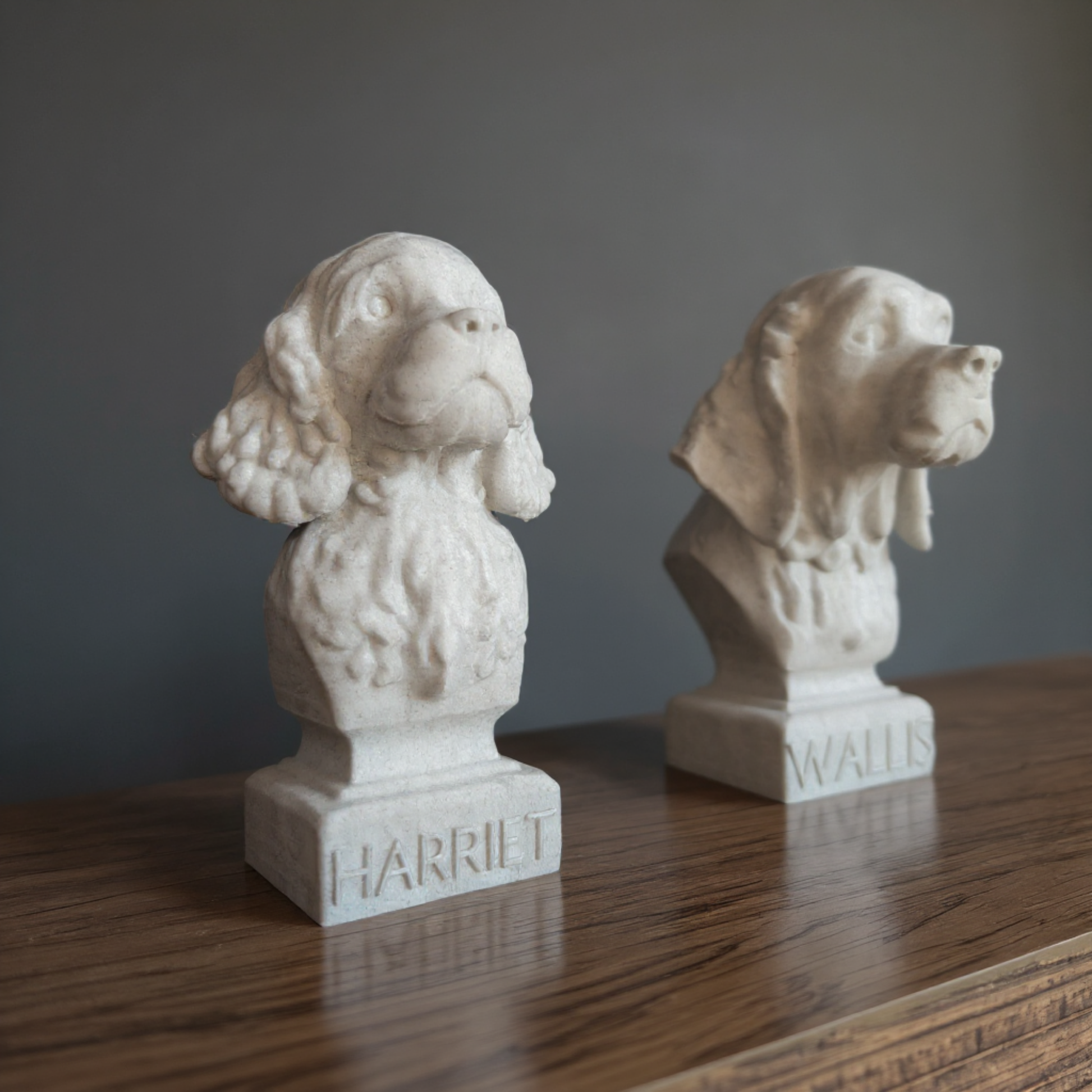 Each custom pet bust sculpture is carefully crafted from your submitted image, capturing the unique personality and likeness of beloved pets in beautiful detail.