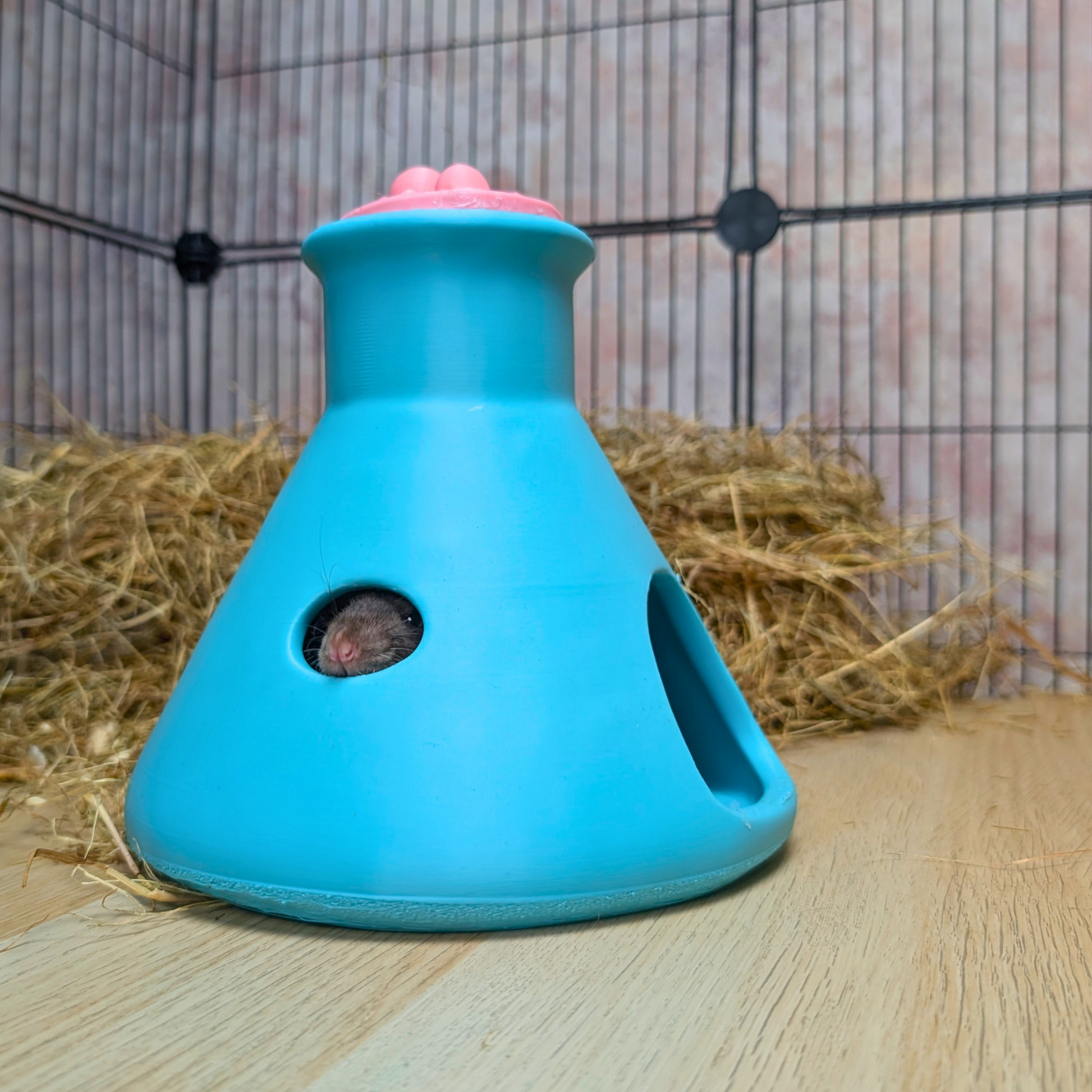 Welcome to the most inventive Rat House your curious companion will ever call home! I've designed this quirky Erlenmeyer flask hideout to be a delightful escape, a cozy snoozing spot, and a conversation starter, all in one. It’s a bit of playful science for your pet's space, meticulously 3D printed with durable materials and a pinch of charm.