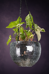 A mirror-tiled hanging planter that throws light across your room while keeping your favourite trailing plants happy. Each glass mirror tile is placed by hand onto the body, with a black chain for hanging and a matte black interior that makes your greenery stand out.