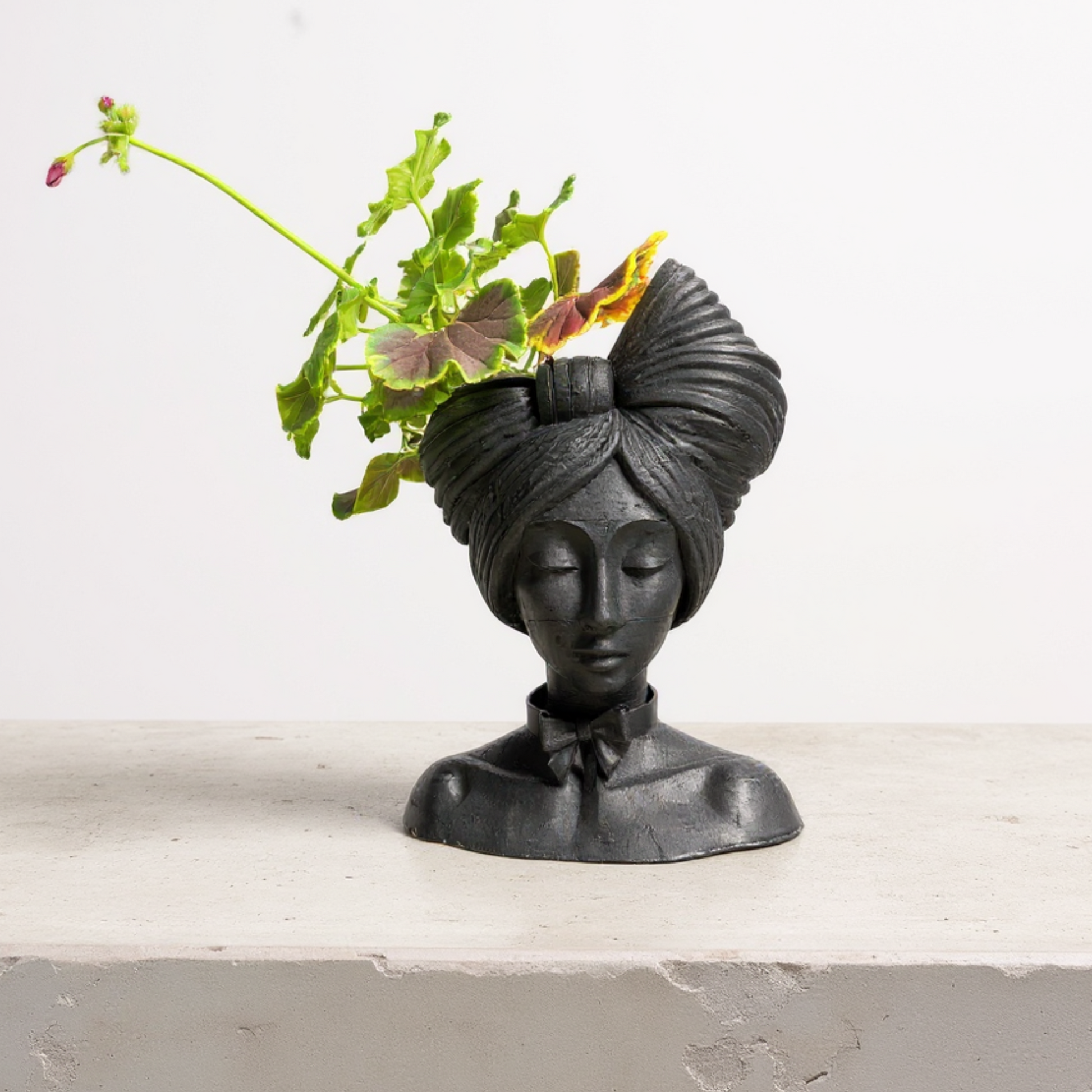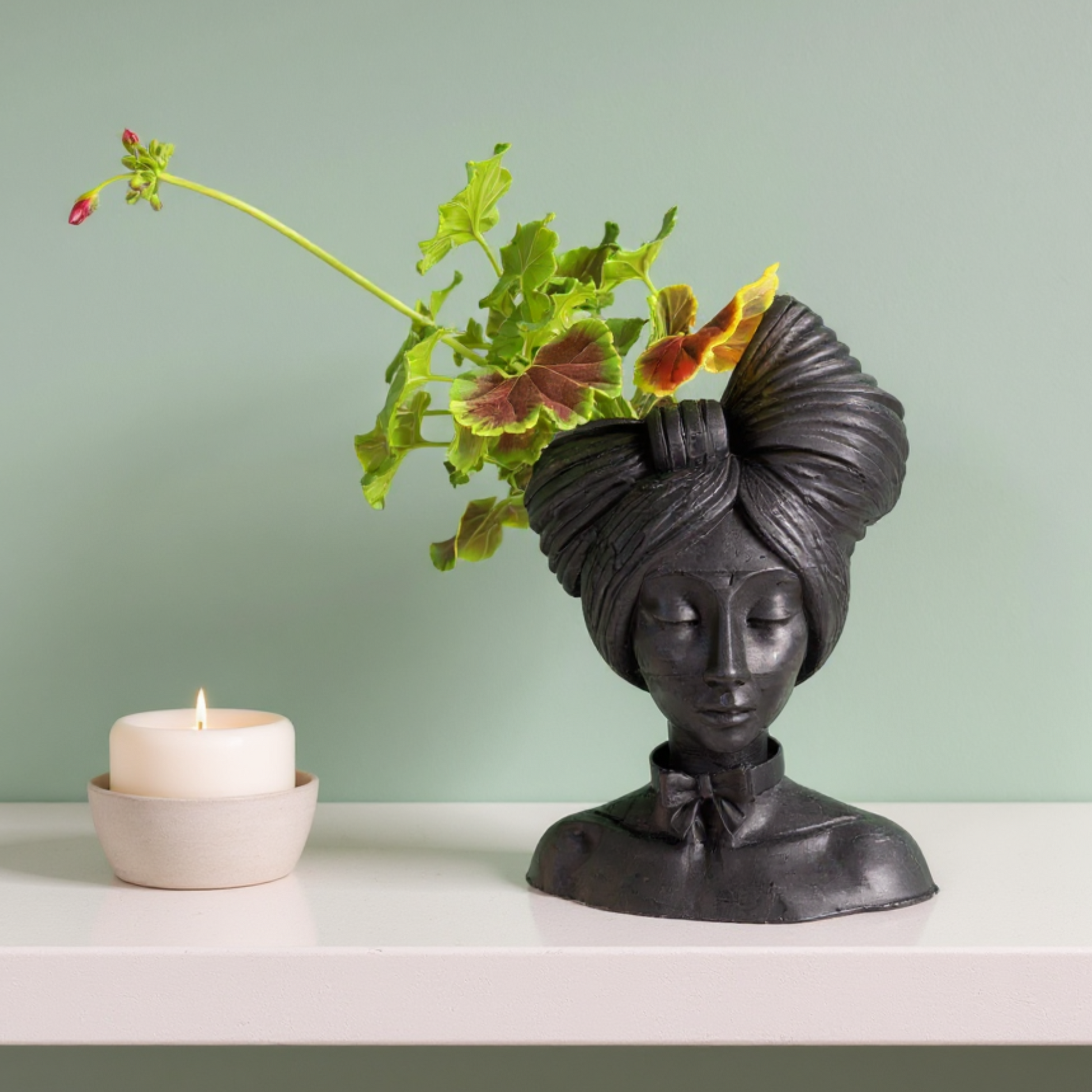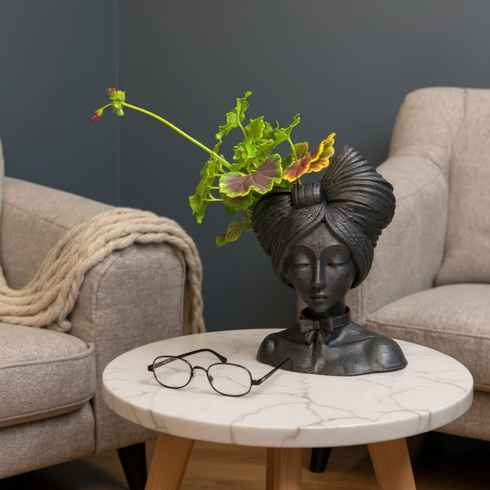 Invite Laila into your sanctuary. More than just a modern planter or body vase, this captivating woman bust sculpture is a story cast in concrete. Her serene expression and elegant form provide a stunning piece of art decoration for your home, perfectly blending boho, minimalist, and art deco styles. This head planter serves as a unique statement piece for your shelf decor, bringing a sophisticated, artistic touch to any room. It's the perfect centerpiece for a home that values individuality.
