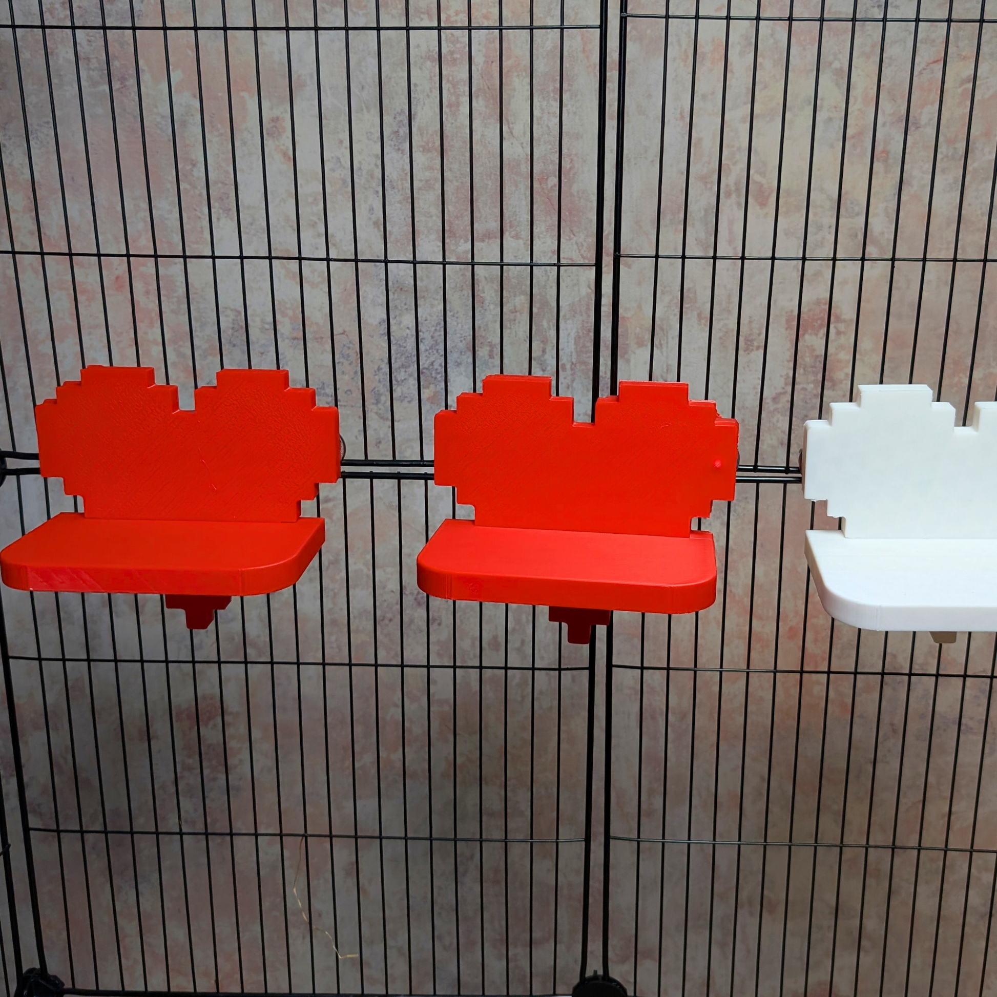 "I do love a good perch with a view! I designed these little heart platforms to give our small companions a cosy spot to call their own. They're strong, colourful, and give them a splendid new perspective on their world. It’s like finding an extra life, but for cage exploration!"