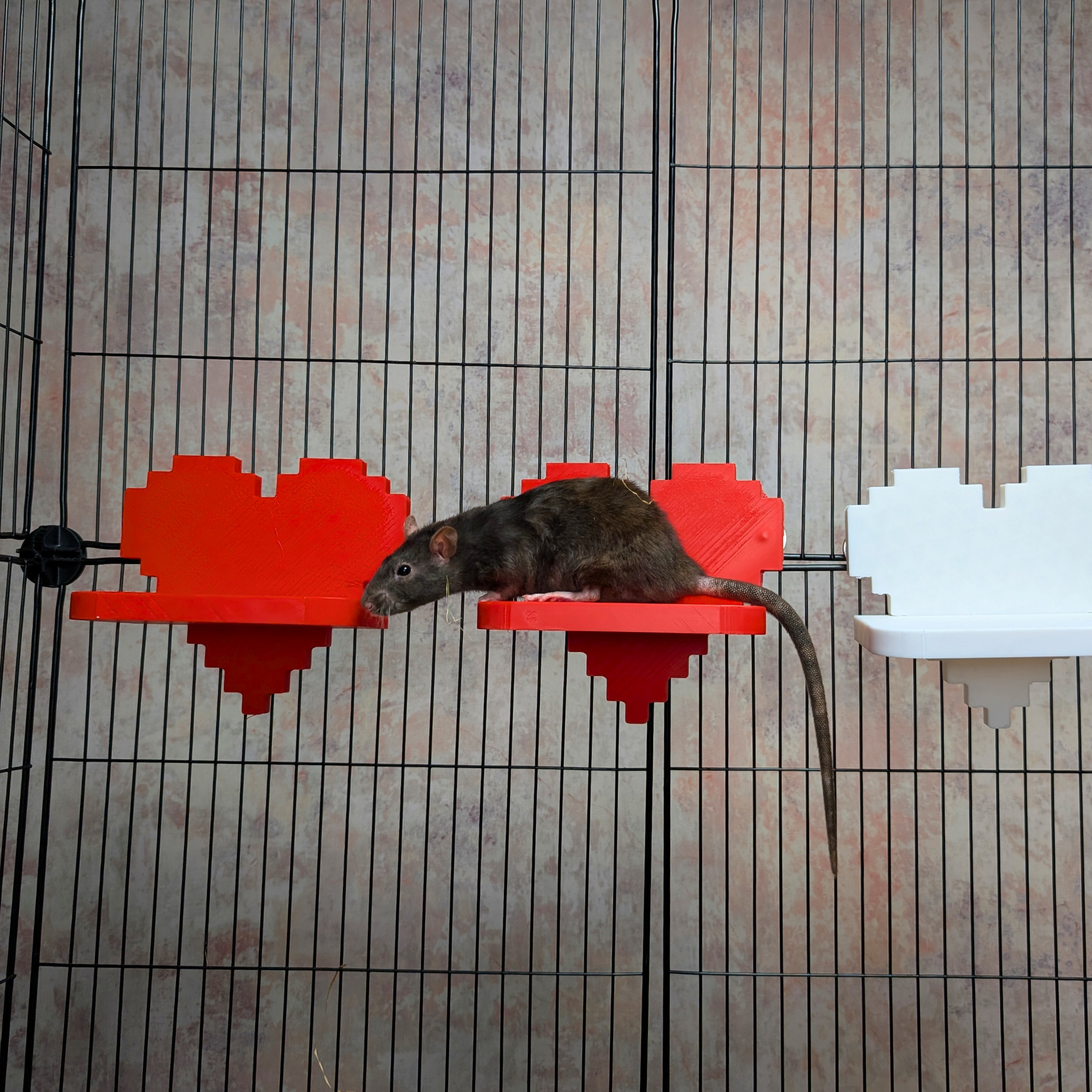 Pip pip! I've fluttered back from the workshop with a bit of digital magic for your furry friends. This vibrant rat accessory set is designed to turn any ordinary cage into an extraordinary playground. This set of three pixelated heart shelves gives your little companions new heights to explore, nap on, and survey their kingdom from. It's the perfect blend of playful fun and functional design, handcrafted right here in the UK.