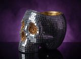The Silver Skull Mirror Planter is a handmade planter, decorated with real glass mirror tiles, measuring approximately 12 x 12 x 18 cm. Handmade in Cumbria, UK by Ripleys Nest.